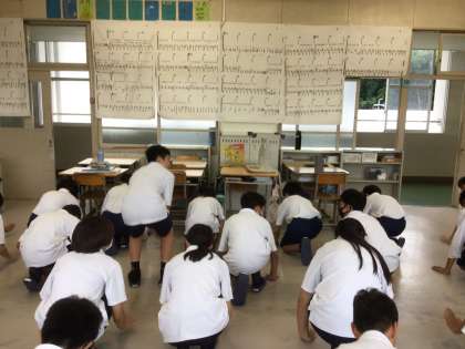 ボディパ練習風景です。リズムと音を合わせて頑張っています。