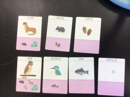 食物連鎖について自作のカード教材を使って、たのしみながら学びました。