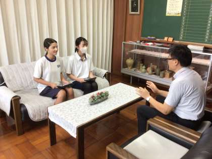 明日から、2名の代表生徒がアメリカ団、イギリス団として、海外派遣に出発します。校長先生に出発のあいさつと意気込みを語りました。約10日間の研修になります。日本との違いなどたくさんのことを学び、気をつけて行ってきてください!帰ってからの報告会を楽しみにしています。