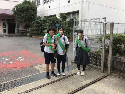 毎月3日は保見の日としてあいさつ運動をしています。たくさんの生徒が参加してくれました。回を重ねるにつれて、参加する人数が増えてうれしいです。