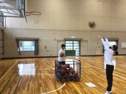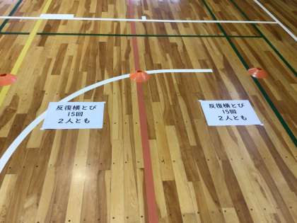 1年生の学年レクの様子です。生徒たちのアイデアで考えた、障害物競走を行いました。