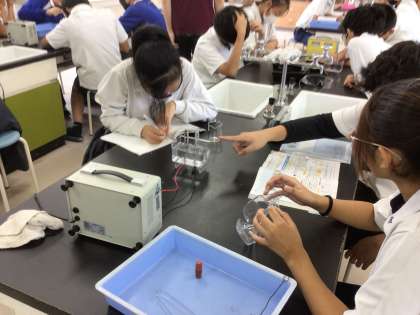 水上置換で気体を集めています