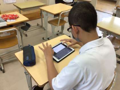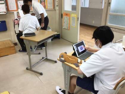 タブレットを使って星空クイズを作成しています。リンク先を設定するなど、考えながら作っているところです。