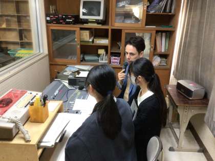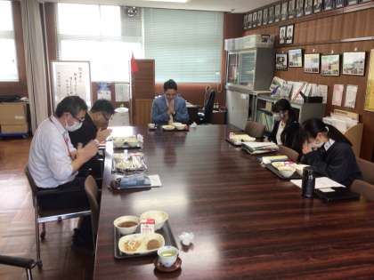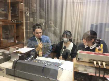 講演会の前に給食の放送でゲスト出演をしてくれました。