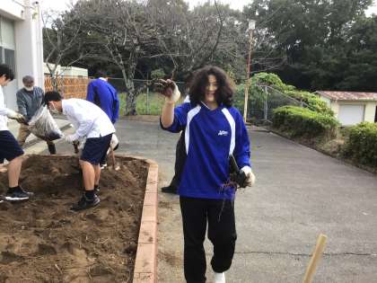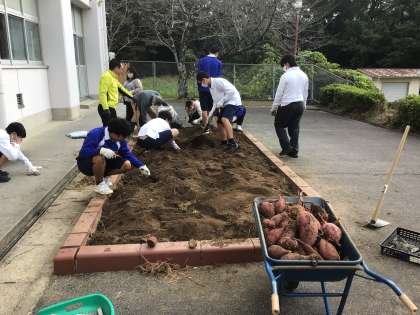 技術家庭科の栽培の授業の様子です。育てていたサツマイモの収穫を行いました。豊作です!