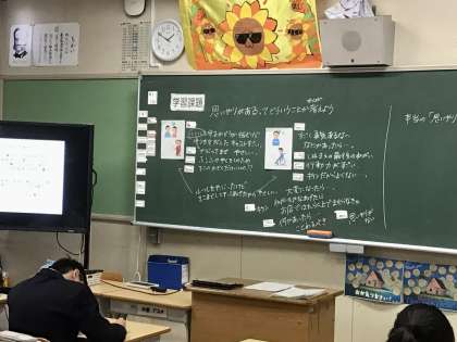 2年生の道徳の授業の様子です。思いやりについて考えました。二つのエピソードを聞いて、思いやりのある行動について話し合いました。