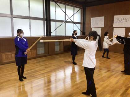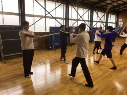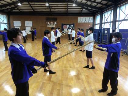 1年生の授業の様子です。体育の武道の授業で、剣道の学習をしています。