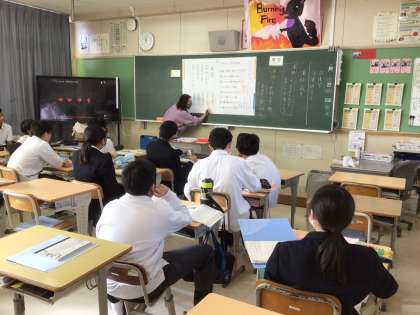 2年生の授業の様子です。漢詩の韻を踏むことについて、J POPの歌詞と比べながら学びました。