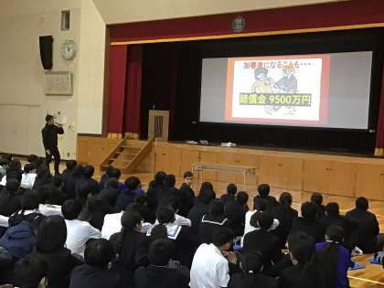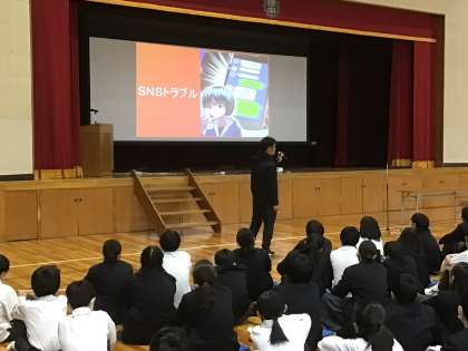 生徒指導の先生の話を聞きました。冬休みの過ごし方、交通安全、SNSトラブル、などについてのお話しを聞きました。