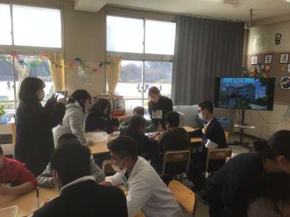 今日は、西保見小学校と交流会をしています。消臭剤を作っています。