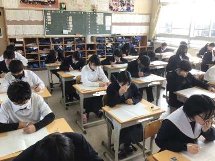 1年生定期テストの様子です 今年度を締めくくるテストです 集中して頑張っています