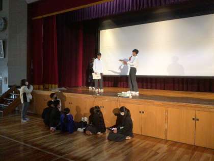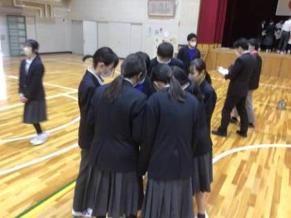 3年生を送る会の準備を2年生、1年生で頑張っています。今日は体育館も使って、リハーサルを行いました。