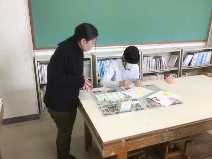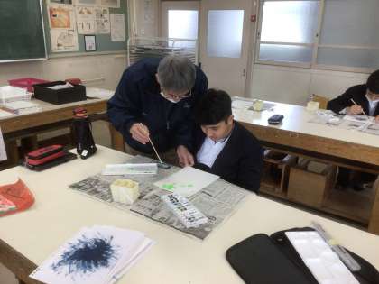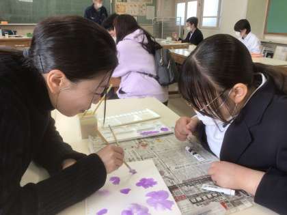 今日は、筆の使い方と色の使い方の学習をしています。どの生徒も集中して取り組んでいます。