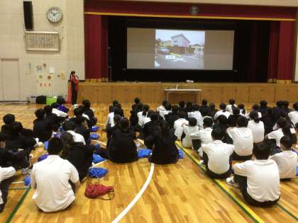 体育館で自転車講習会を行いました。講師さんのお話しを聞いて、安全な自転車の乗り方のついて学習しました。
