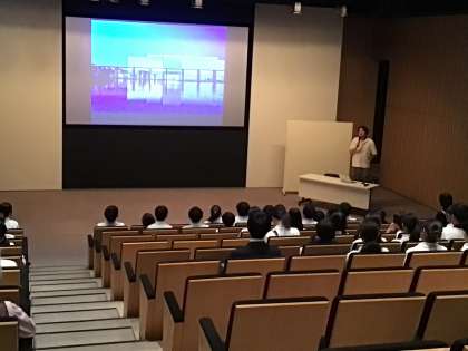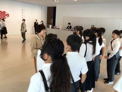 まずは講堂に集まり、案内をしてくれるボランティアさんや美術館の紹介、諸注意の説明を受けました。そして、グループに分かれて各展示をボランティアさんと共にまわりました。