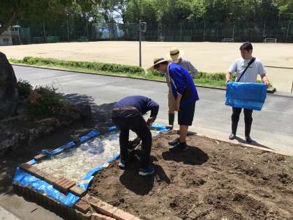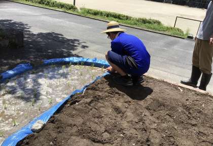 今日、保見中学校に田んぼができました!