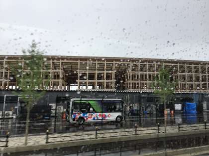 万博会場に到着しました。雨は小雨ですがすごい人です。