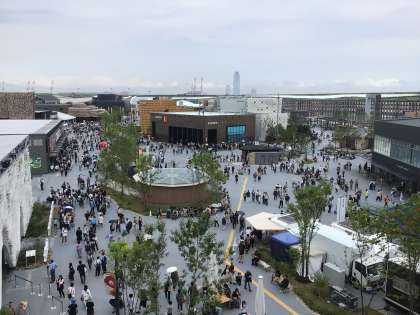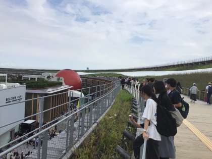 全部木材でできている大屋根リングに登ってみました。地上は人が多くて歩きにくいので、リングを歩くと目的地に行けます。