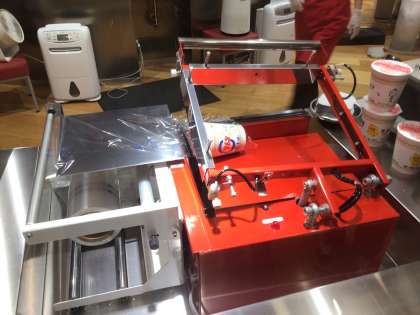 フイルムは袋に入れて熱でピッタリ、ジャストフィット。袋に空気を入れてマイカップヌードルの完成です。