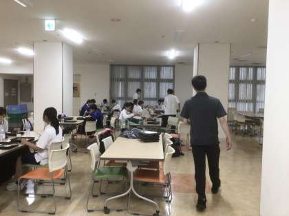 万博ビーストでアスレチック体験を終え、今から昼食です。生徒たちは、まだまだ元気いっぱいです。