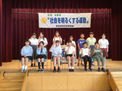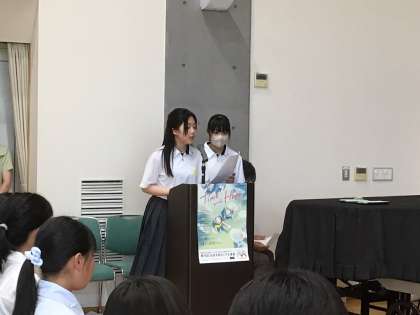 6/21(土)に社会を明るくする運動がありました。小中高それぞれの学校から、学校紹介や作文発表を行いました。また、この会の司会を保見中3年生の二人が行い、活躍しました。
