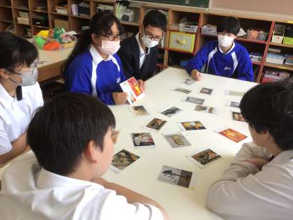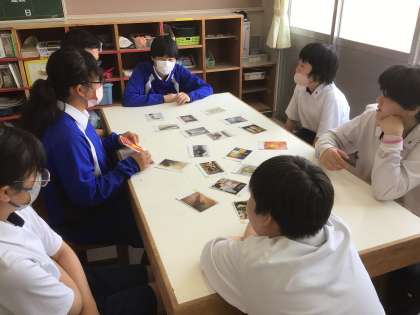 美術作品のカードを使って、似ているところを発表する、マッチングゲームをしました。