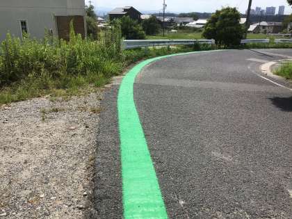 学校から伊保小にかけての通学路のグリーンベルトが薄れていたところが、区長さんや地域の方々のおかげで、要望が通り、塗り直し整備していただけました。グリーンベルトは運転者への通学路の注意喚起の意味があるそうです。生徒たちも安全に気をつけて登下校してほしいです。