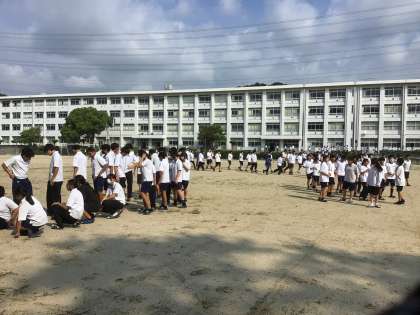 1時間目に避難訓練を行いました。今回は、それぞれの授業の場所から、教科担任先導での避難を行いました。授業中に限らず、休み時間などに災害が起きる場合もあります。災害時にどのように動くのか想定をして備えましょう。
