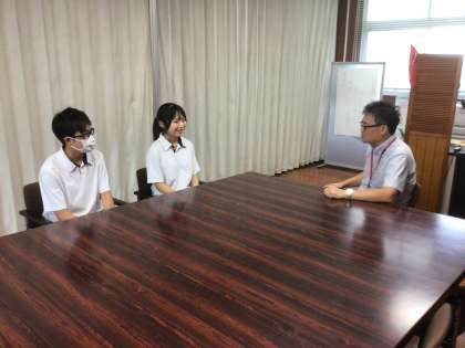 明日から、アメリカ団、イギリス団へ豊田市の代表の生徒たちが海外派遣に出発します。本校の代表生徒が校長先生に出発の報告を行いました。海外の文化に触れ、多くのことを学んで来て欲しいです。