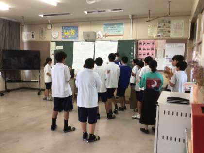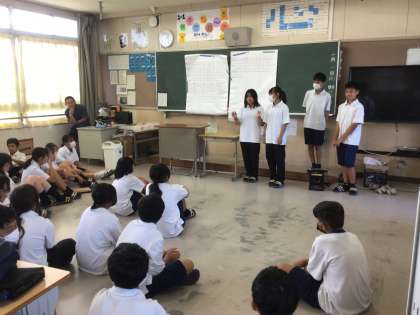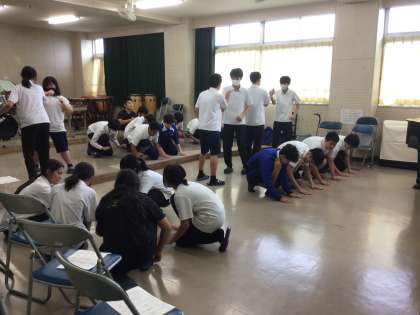 写真はボディパーカッションの練習の様子です