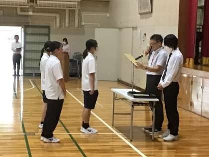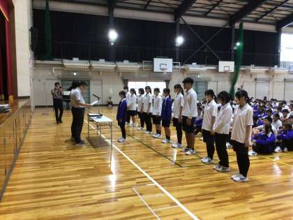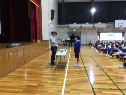 前期終業式の様子です。はじめに表彰を行いました。