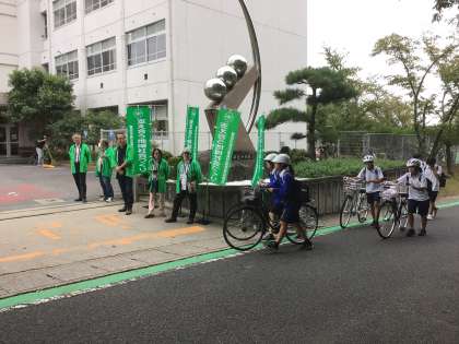 保見地区の民生委員さんが来校し、朝のあいさつ運動をしてくださいました。こどもたちもさわやかにあいさつを返していました。