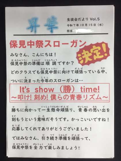 保見中祭スローガン決定