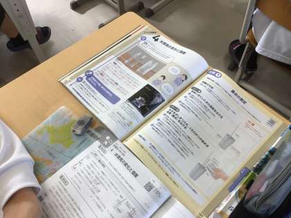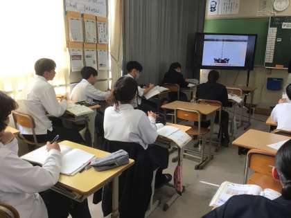 2年生の授業の様子です。理科では。露点のの学習をしています。デジタル教材を使って、内容を確認しています。