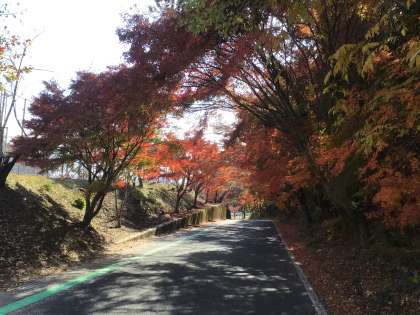 保見中前の道路の紅葉が見頃になってきました。寒暖差も大きく、インフルエンザも流行り始めております、体調には十分ご注意ください。