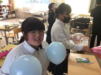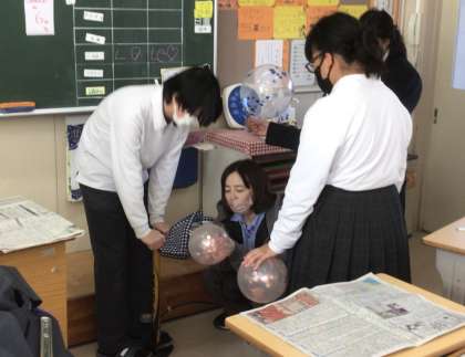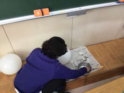 異文化理解の授業、piñata作りの様子です。メキシコのお祝いごとに使う紙製のくす玉だそうです。楽しそうに作っています。