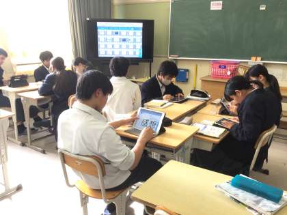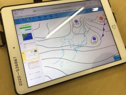 理科では天気の変化の授業を行なっています。天気図をみて、自分で予想を立てているところです。