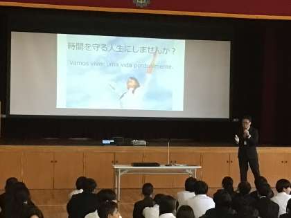 校長先生のお話を聞きました。時間を守ることの大切さについてのお話を聞きました。