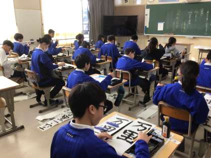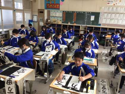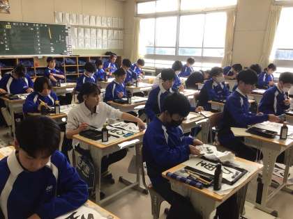 書き初め大会の様子です。みんな集中して取り組んでいます。