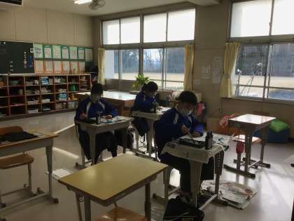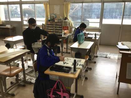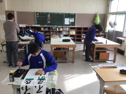 書き初め大会の様子です。それぞれの学年の課題を一生懸命取り組んでいます。