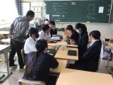 スタッフ会の様子です。スタッフ会とは、いわゆる委員会活動です。1年生から3年生までが一緒に活動しています。