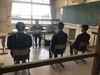 3年生は、面接練習をしています。進路相談会の裏で、学年外の先生にも面接官をしてもらっています。ドアの開け方や姿勢、受け答えなど、本番のように練習しています。