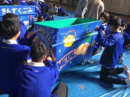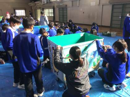 1年生は総合的な学習の時間に、アーティストさんと一緒にアートダストボックスの作成に取り組んでいます。今日完成させて、保見自治区に受け渡しをします。