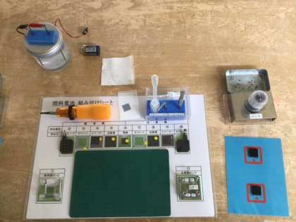 水素と酸素で走る仕組みを学び、実際に燃料電池作りを行いました。