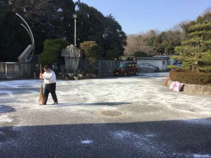 今週は、寒波が到来するとの予報です。場所によっては、降雪や路面の凍結もあるかと思います。登校時は特に気温が低いので十分注意してください。学校では、凍結する恐れがあるところに防止剤を散布しました。