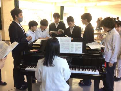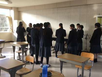 2年生の授業の様子です。送る会に向けて合唱練習を行なっています。パートに分かれて練習しているところです。