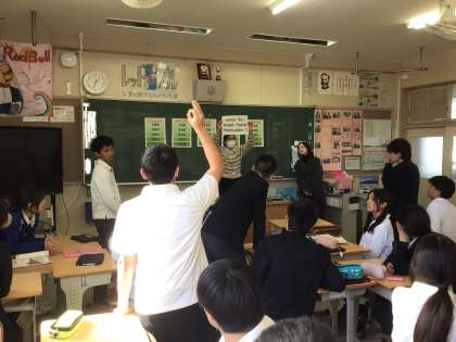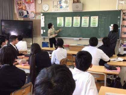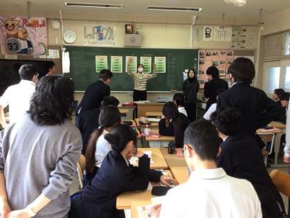 3年生の英語の授業の様子です。今日はALTの先生にきていただきました。生徒たちもall