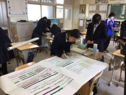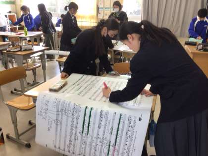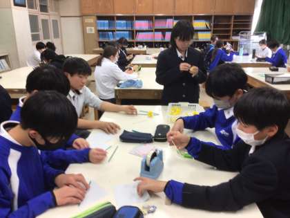 1、2年生合同で、3年生を送る会の準備をしています。それぞれの担当に分かれて頑張っています。