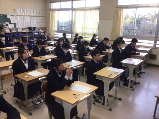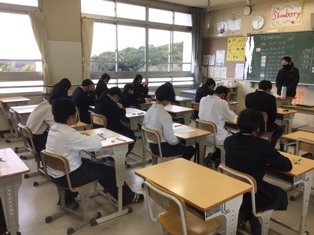1年生ははじめての学習診断テストです。1日で5教科のテストをするのもはじめての経験です。学習診断テストは、豊田市で一斉に行うテストで、受験に近い形で出題されます。みんな、集中して取り組んでいました。