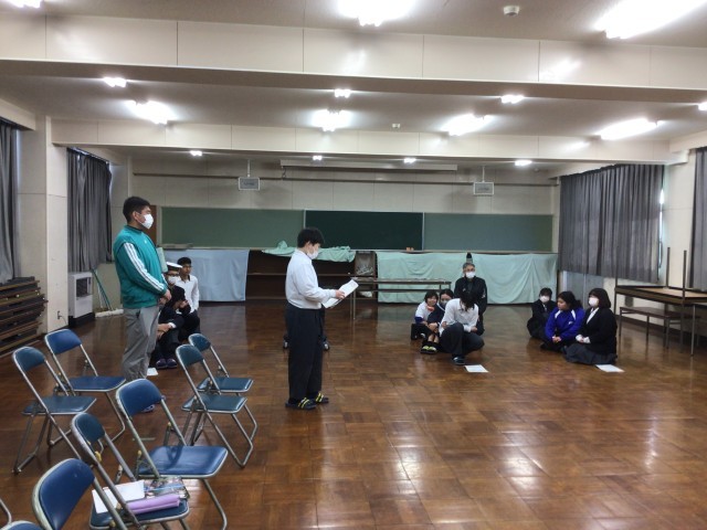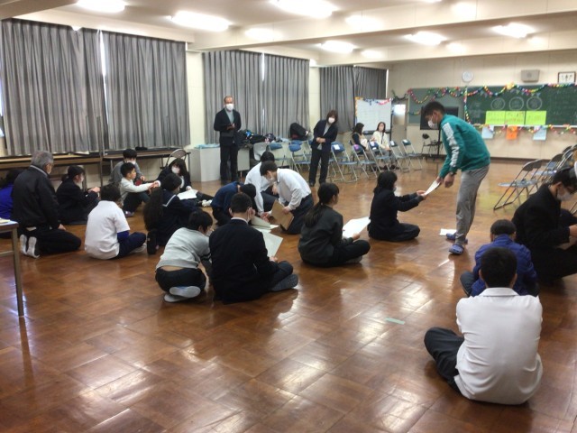 来年入学してくる、小学校の児童が交流会に来てくれました。568学級の生徒たちは、お迎えや司会を頑張っていました。ゲームをみんなで行いました。